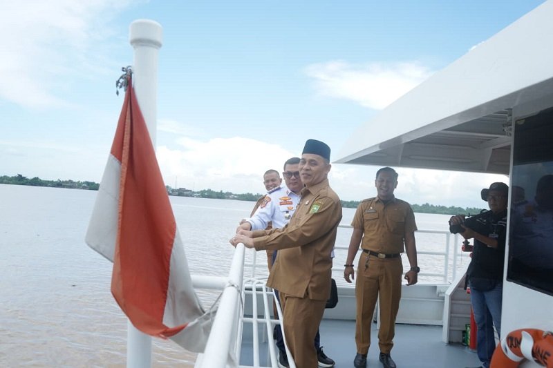 Bupati Inhil, Herman, langsung meninjau kesiapan angkutan yang bersandar di Pelabuhan Lasdap tersebut.