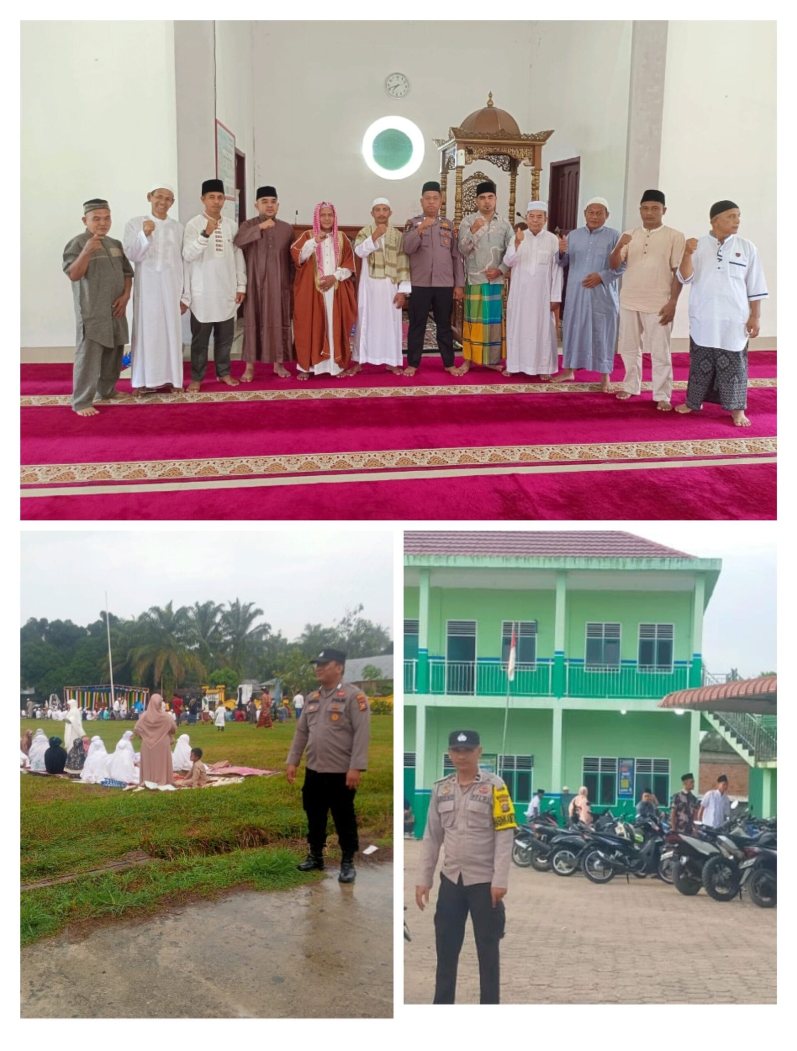 Untuk memastikan pelaksanaan ibadah Shalat Idul Adha berjalan dengan lancar dan aman, Kapolres Rokan Hulu, AKBP. Budi Setiyono melalui Kapolsek Rambah Hilir, Ipda Jonnes kerahkan personil untuk melakukan pengamanan ibadah Shalat Idul Adha di Mesjid Al-Muslimin, dusun Nogori Kumuh, desa Rambah Hilir, (17/06/2024).