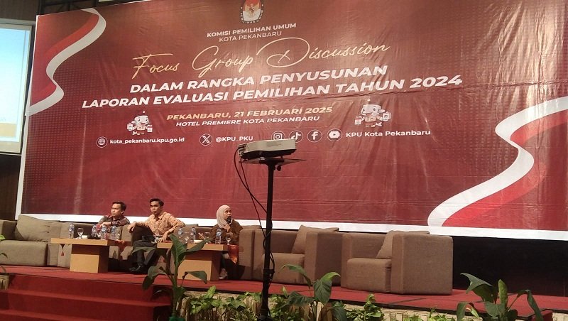 PEKANBARU, hitsnasinal.com – Untuk meningkatkan kualitas penyelenggaraan Pemilihan Umum (Pemilu) di masa mendatang, Komisi Pemilihan Umum (KPU) Kota Pekanbaru mengadakan Focus Group Discussion (FGD) di Hotel Premiere, Pekanbaru, pada Jumat (21/2/2025). Kegiatan ini menjadi wadah evaluasi terhadap jalannya Pemilu 2024 dengan melibatkan berbagai pihak terkait.