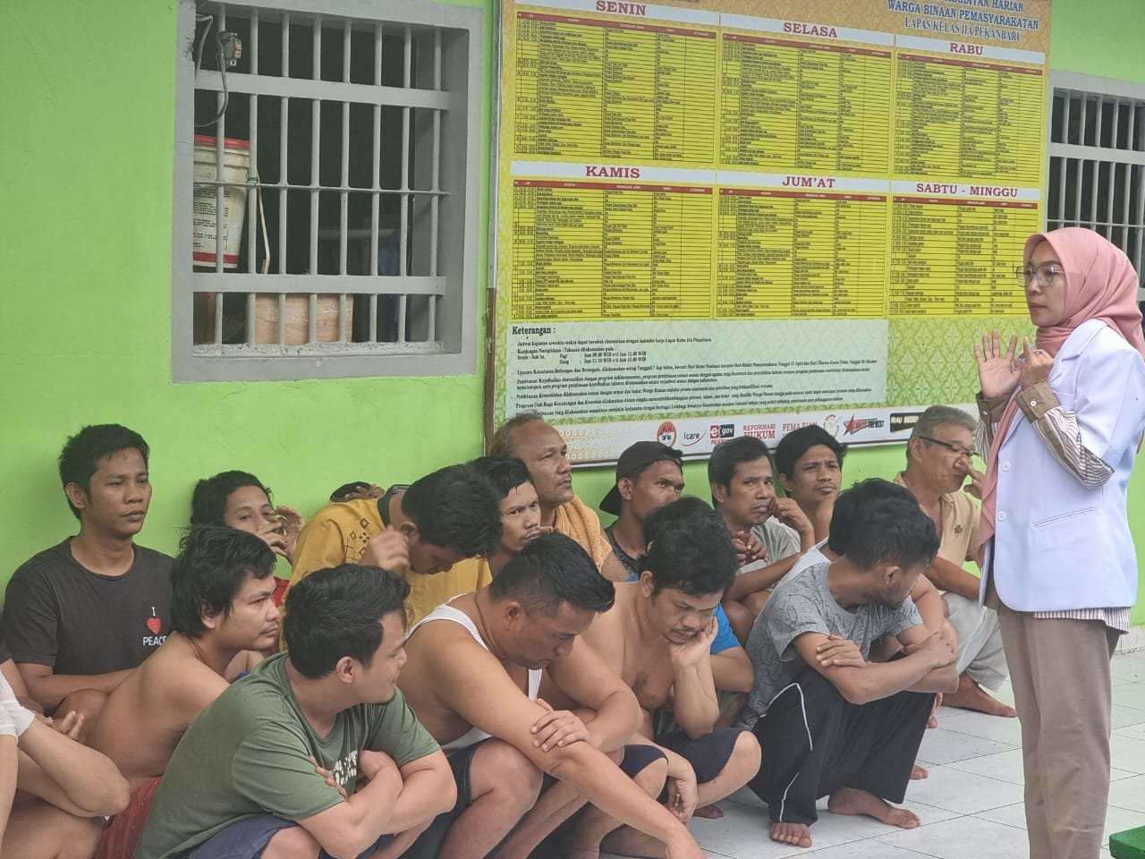 Maka dari itu Lapas Kelas IIA Pekanbaru yang dimotori oleh Klinik Pratama Lapas Kelas IIA Pekanbaru yang terdiri dari dr. Yani beserta Perawat Yoana Bangun melakukan aksi penyuluhan dalam meningkatkan kualitas kesehatan dan kebersihan warga binaan, Sabtu (04/05). Kegiatan penyuluhan kesehatan ini juga dilaksanakan bersama jajaran KPLP dan Kamtib Lapas Pekanbaru.