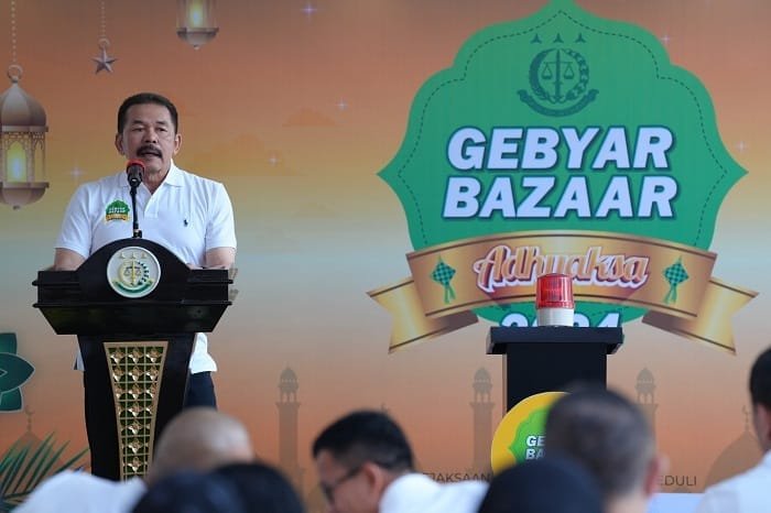 JAKARTA, hitsnasional.com – Kamis 28 Maret 2024 bertempat di halaman Gedung Utama Kejaksaan Agung, Jaksa Agung ST Burhanuddin memberikan sambutan sekaligus membuka kegiatan Bakti Sosial Kejaksaan RI Peduli dan Gebyar Bazar Adhyaksa Tahun 2024, yang menyediakan kebutuhan pokok dan jajanan nusantara dengan harga terjangkau untuk para pegawai di Lingkungan Kejaksaan Agung, serta penyaluran paket kebutuhan bahan pokok kepada masyarakat sejumlah total 6.600 paket.