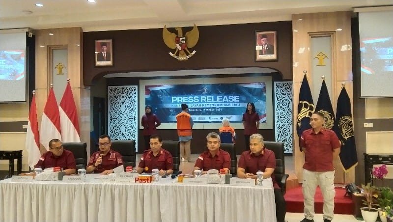 PEKANBARU, hitsnasional.com – Kantor Wilayah Kemenkumham Provinsi Riau beserta Kantor Imigrasi kelas I TPI Dumai dan Direktorat Jenderal Imigrasi Dumai menyelenggarakan kegiatan Konferensi Pers terkait Penanganan dugaan Tindakan Pidana ke imigrasian yang dilakukan oleh 2 orang Warga Negara Asing (WNA) diduga berkebangsaan Thailand di Ruang Aula Kanwil Kemenkumham Riau Jl. Sudirman No. 233 Pekanbaru, Kamis (17/10/24).