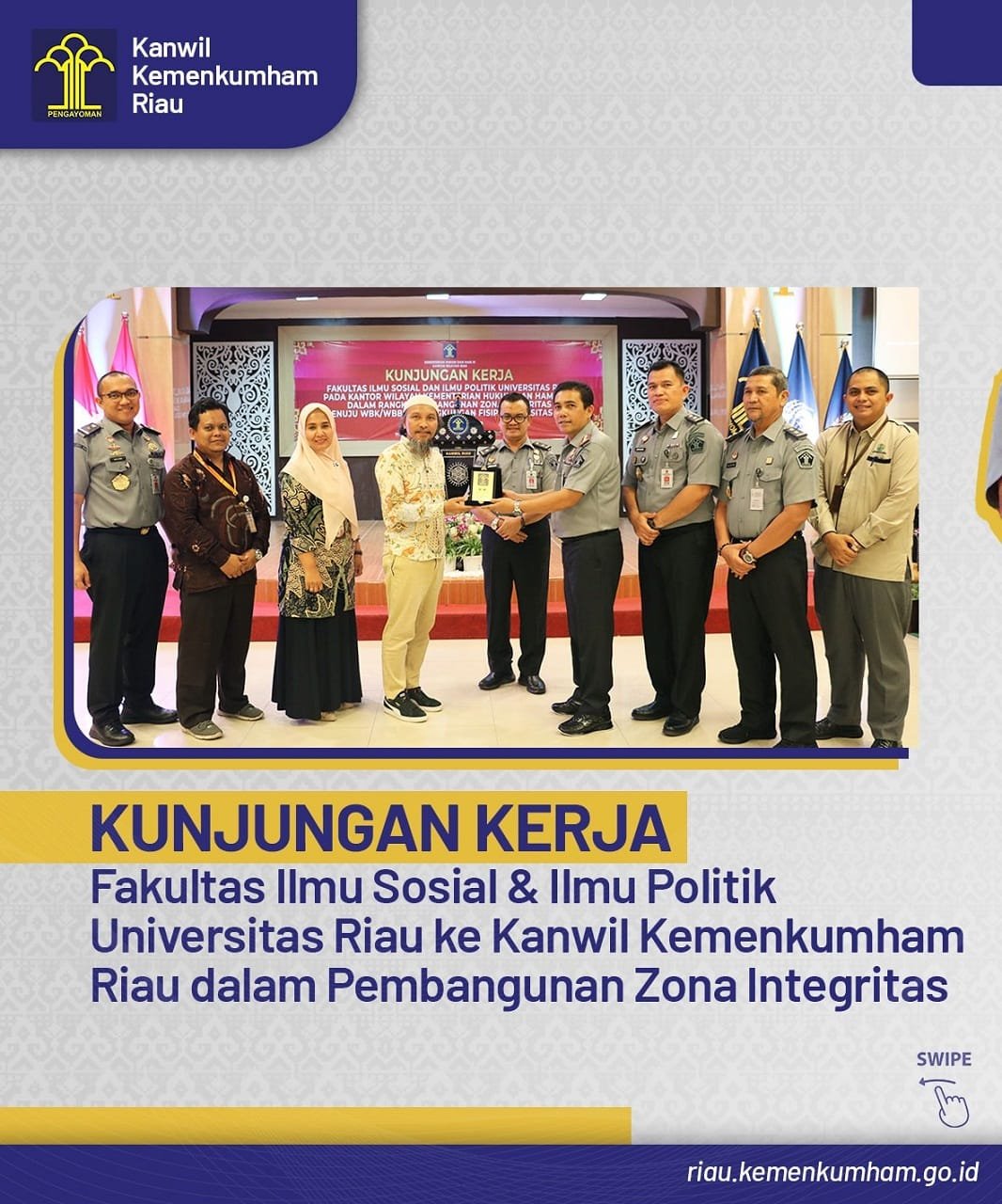 Dekan FISIP UNRI, Meyzi Heriyanto, dalam sambutannya mengucapkan terima kasih kepada Kanwil Kemenkumham Riau atas kesediaan menerima kunjungan kerja FISIP UNRI. Ia berharap FISIP UNRI juga dapat mengikuti jejak Kanwil Kemenkumham Riau dalam meraih predikat WBK, dan mendoakan Kanwil Kemenkumham Riau untuk mendapatkan predikat WBBM di masa depan.