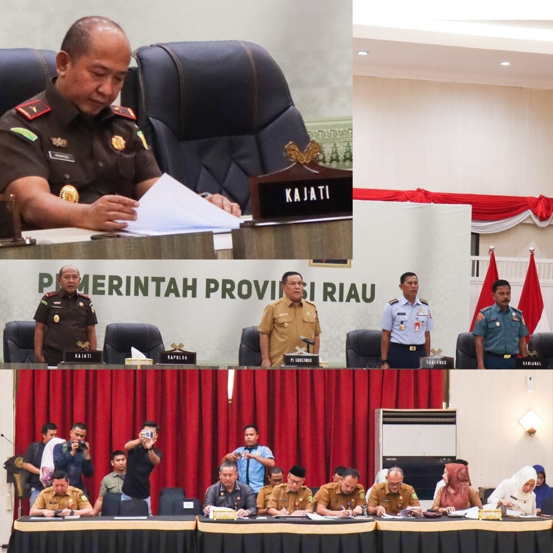 Rapat Forum Koordinasi Pimpinan Daerah (FORKOPIMDA) Provinsi Riau terkait Ketersediaan Bahan Pokok & Kesiapan Arus Mudik Lebaran Tahun 2024 di Provinsi Riau langsung dipimpin oleh Pj. Gubernur Riau Ir. SF Haryanto, MT.