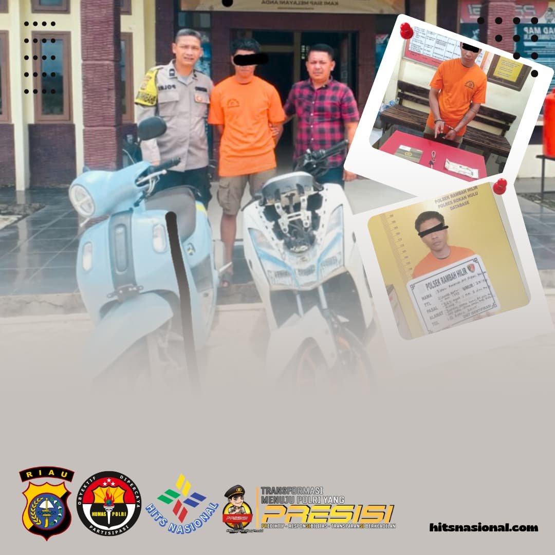 RAMBAH HILIR, hitsnasional.com – Kepolisian Sektor (Polsek) Rambah Hilir berhasil mengungkap kasus pencurian sepeda motor yang terjadi di wilayah Dusun Suka Makmur, Desa Sejati, Kecamatan Rambah Hilir, Kabupaten Rokan Hulu, (07/04/2025). Satu orang pelaku berhasil diamankan, sementara satu pelaku lainnya masih dalam pengejaran petugas.