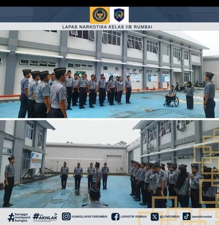PEKANBARU, hitsnasional.com – Lembaga Pemasyarakatan (Lapas) Narkotika Kelas IIB Rumbai mengawali hari pertama tugas pada pekan ini dengan melaksanakan apel pagi secara khidmat. Apel pagi rutin menjadi sarana bagi pimpinan untuk menyampaikan instruksi, apresiasi, hingga evaluasi terhadap tugas dan fungsi sebagai Petugas Pemasyarakatan, serta memberikan arahan di luar tugas dan fungsi sebagai Aparatur Sipil Negara (ASN).