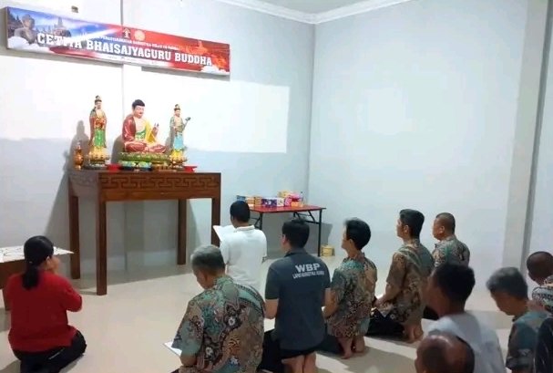 PEKANBARU, hitsnasional.com – Dalam rangka meningkatkan pemahaman keagamaan, warga binaan Lembaga Pemasyarakatan (Lapas) Narkotika Kelas IIB Rumbai yang beragama Buddha melaksanakan ibadah pada Rabu (13/8/2024) di Ruang Cetiya Bhaishajyaguru Buddha.