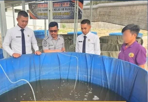 PEKANBARU, hitsnasional.com – Lembaga Pemasyarakatan (Lapas) Narkotika Kelas IIB Rumbai terus melakukan pembinaan kemandirian dengan memberdayakan Warga Binaan Pemasyarakatan (WBP) melalui kegiatan perawatan rutin budidaya ikan sistem bioflok, Selasa (15/7/2025).