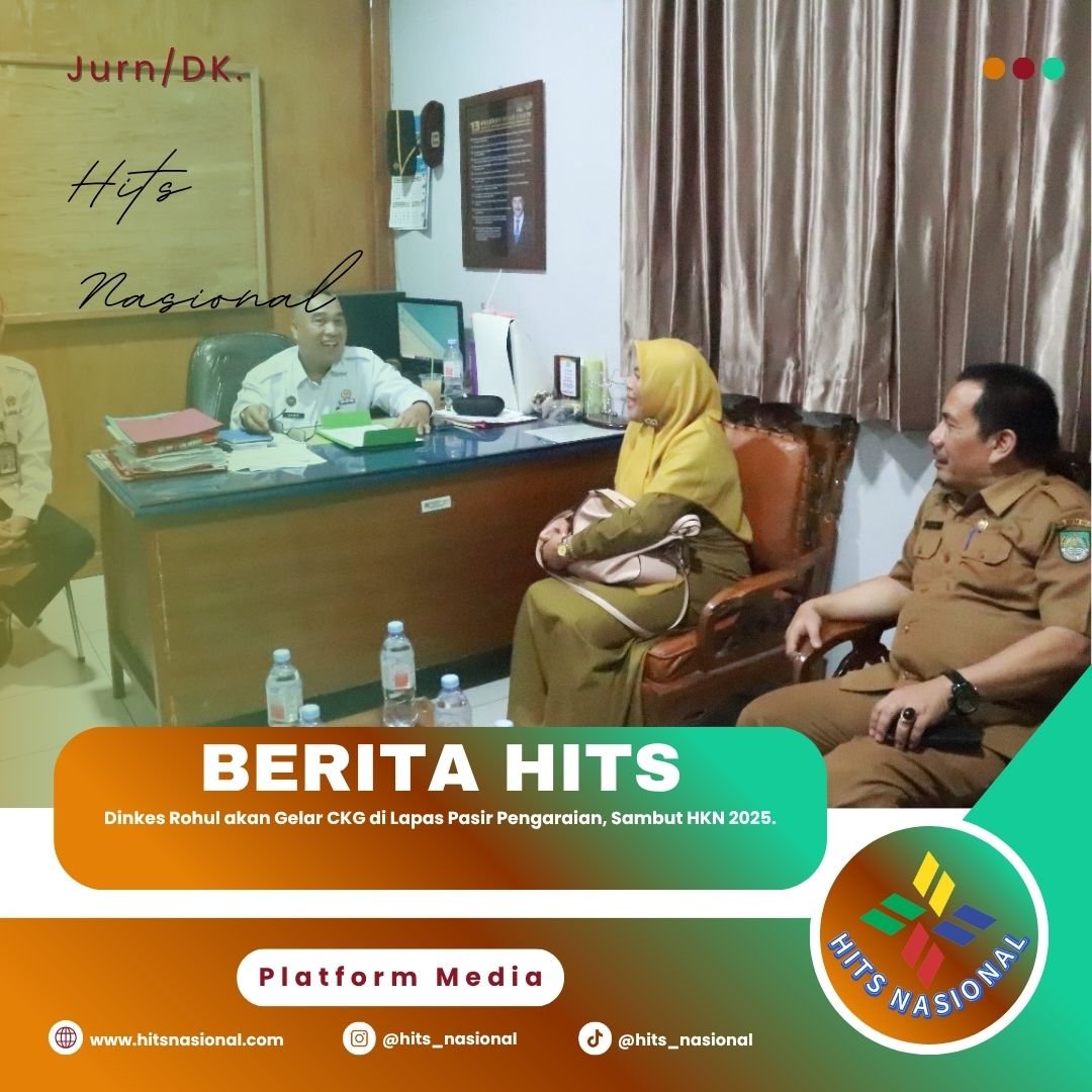 Pasir Pengaraian, hitsnasional.com – Menjelang peringatan Hari Kesehatan Nasional (HKN) Tahun 2025, Dinas Kesehatan Kabupaten Rokan Hulu melakukan koordinasi ke Lembaga Pemasyarakatan (Lapas) Kelas IIB Pasir Pengaraian dalam rangka pelaksanaan kegiatan Cek Kesehatan Gratis (CGK) bagi warga binaan dan pegawai, Selasa (04/11/2025).