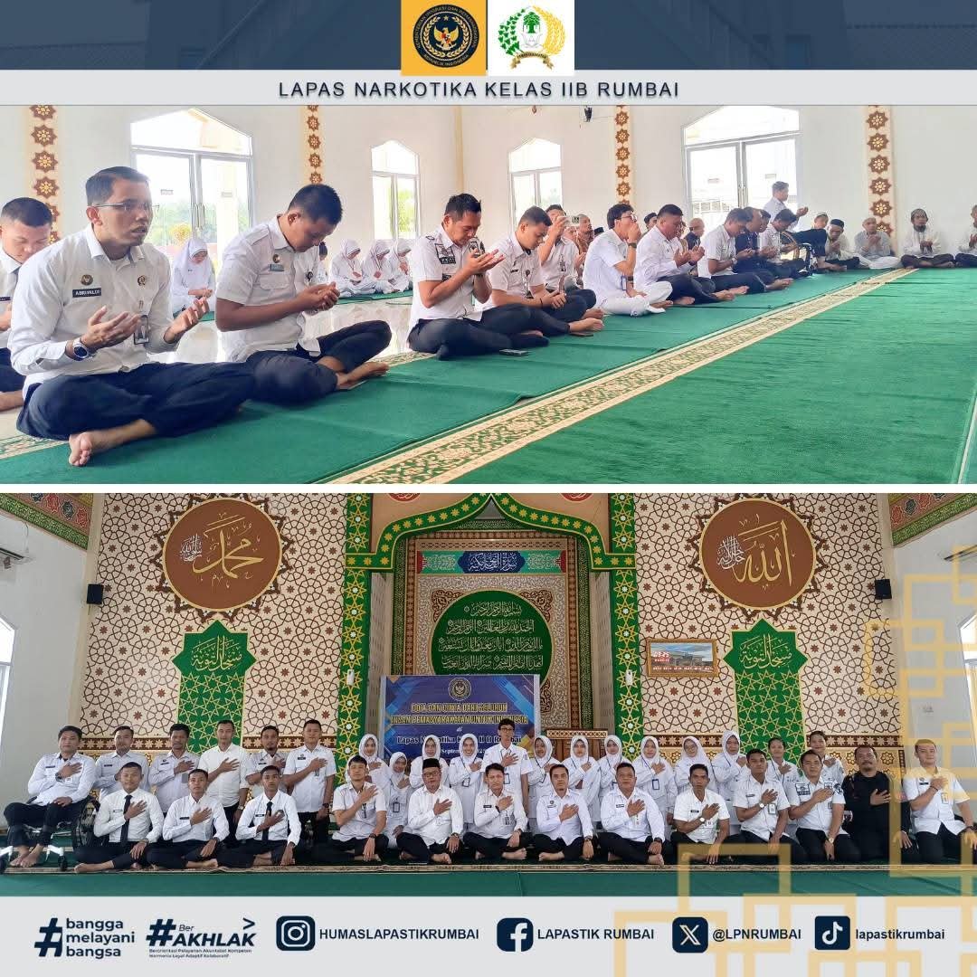 Pekanbaru, hitsnasional.com – Dalam rangka menumbuhkan semangat cinta tanah air serta memperkuat persatuan dan kesatuan bangsa, Lapas Narkotika Kelas IIB Rumbai melaksanakan Doa Bersama di Mesjid At-Taubah pada Senin Pagi, (01/09/2025).