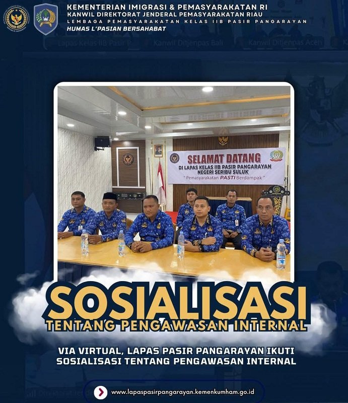 Secara virtual, Kepala Lembaga Pemasyarakatan (Lapas) Kelas IIB Pasir Pengaraian, Efendi Parlindungan Purba, didampingi Kepala Kesatuan Pengamanan Veazanol Kosuma, Kepala Seksi Administrasi Keamanan dan Ketertiban Anton Fernando, Kepala Subbagian Tata Usaha, beserta Tim Satuan Operasional Kepatuhan Internal, turut hadir mengikuti kegiatan penguatan yang disampaikan Dirjenpas.
