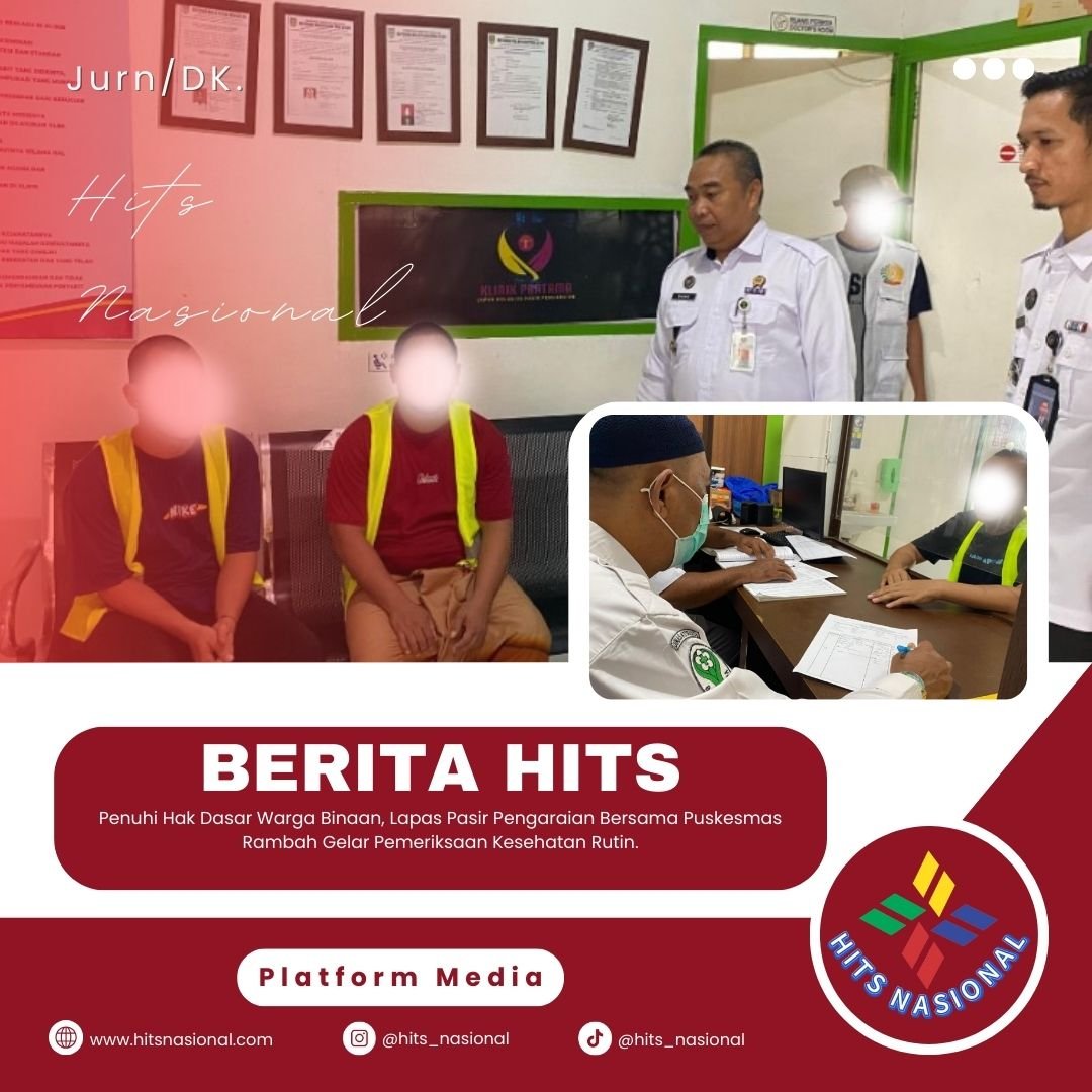 Pasir Pengaraian, hitsnasional.com – Lapas Kelas IIB Pasir Pengaraian terus berkomitmen memberikan pelayanan kesehatan optimal bagi warga binaan. Sebagai wujud komitmen tersebut, Lapas Pasir Pangarayan melaksanakan pelayanan kesehatan di Klinik Pratama Lapas Pasir Pengaraian bekerja sama dengan Puskesmas Rambah pada Senin (29/09/2025).
