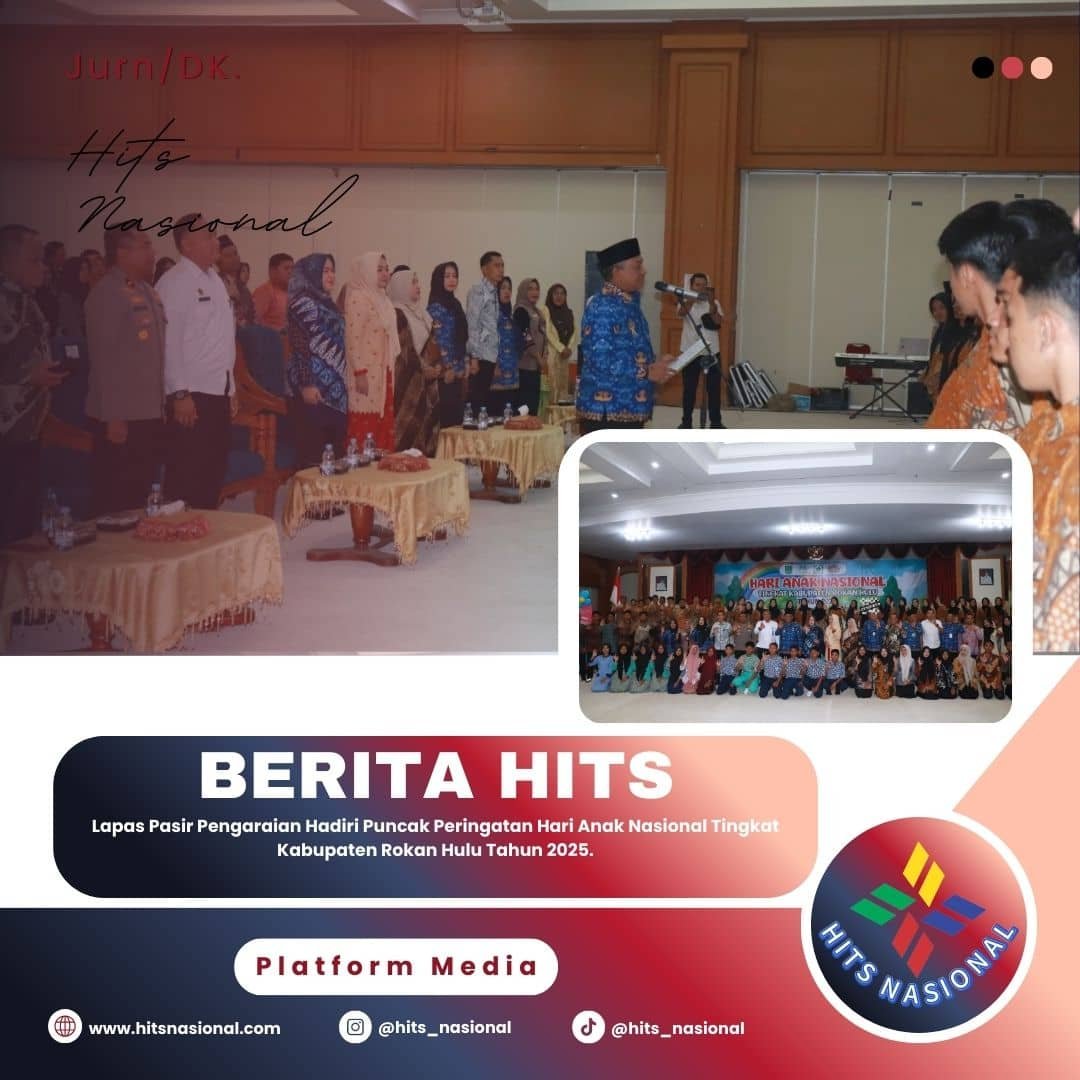 Pasir Pengaraian, hitsnasional.com – Lembaga Pemasyarakatan (Lapas) Kelas IIB Pasir Pengaraian menghadiri kegiatan Puncak Peringatan Hari Anak Nasional (HAN) Tingkat Kabupaten Rokan Hulu Tahun 2025 yang diselenggarakan oleh Pemerintah Kabupaten Rokan Hulu, Rabu (17/12/2025), bertempat di Aula Islamic Center Rokan Hulu.