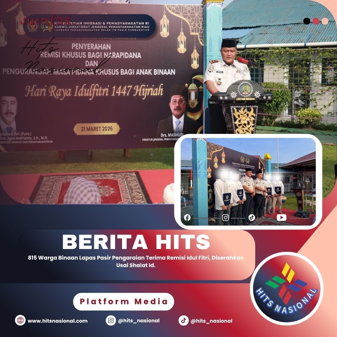 Pasir Pengaraian – Lembaga Pemasyarakatan (Lapas) Kelas IIB Pasir Pengaraian memberikan remisi khusus Idul Fitri kepada sebanyak 815 warga binaan, yang diserahkan bertepatan dengan pelaksanaan Shalat Id, sebagai bentuk penghargaan atas perilaku baik dan partisipasi aktif dalam program pembinaan.