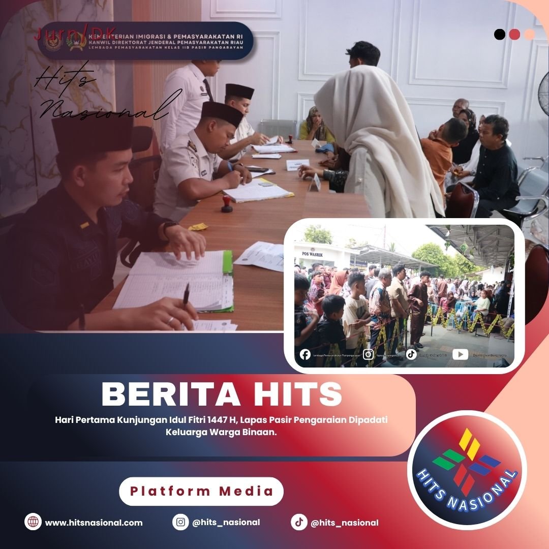 Pasir Pengaraian, hitsnasional.com – Hari pertama layanan kunjungan Idul Fitri 1447 H/2026 M di Lembaga Pemasyarakatan (Lapas) Kelas IIB Pasir Pengaraian dipadati oleh keluarga warga binaan, Sabtu (21/3/2026). Antusiasme masyarakat terlihat sejak pagi hari untuk bersilaturahmi dengan anggota keluarga yang tengah menjalani masa pembinaan.