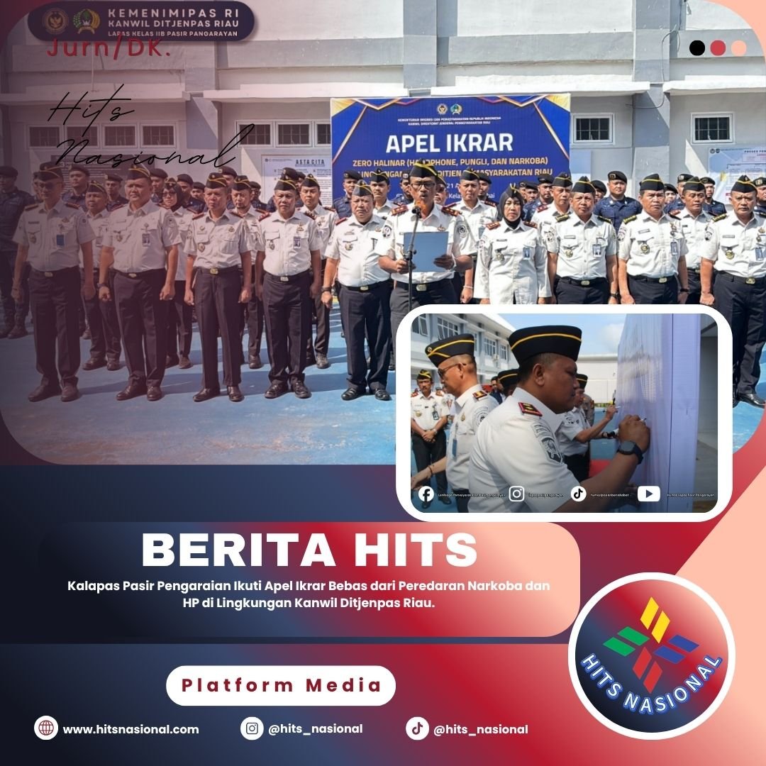 Pekanbaru, hitsnasional.com – Kepala Lembaga Pemasyarakatan (Kalapas) Kelas IIB Pasir Pengaraian, Efendi Parlindungan Purba, menghadiri kegiatan Apel Ikrar Bebas dari Peredaran Narkoba dan Handphone yang diselenggarakan oleh Kantor Wilayah Direktorat Jenderal Pemasyarakatan Riau pada Selasa (21/4/2026).