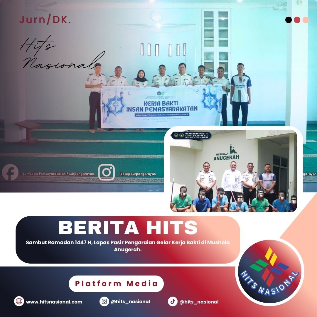 Pasir Pengaraian, hitsnasional.com – Dalam rangka menyambut Bulan Suci Ramadan 1447 H, Lembaga Pemasyarakatan Kelas IIB Pasir Pengaraian melaksanakan kegiatan kerja bakti dan kebersihan di Mushola Anugerah yang berada di sekitar lingkungan Lapas, Rabu (18/02/2026).