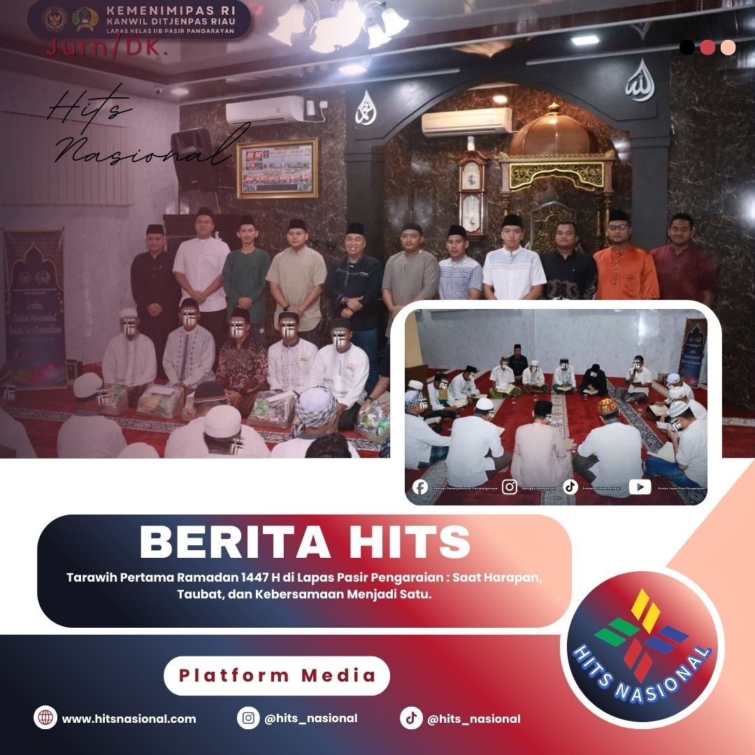 Pasir Pengaraian, hitsnasional.com – Suasana khidmat dan penuh kebersamaan menyelimuti Lembaga Pemasyarakatan Kelas IIB Pasir Pengaraian pada pelaksanaan Sholat Tarawih pertama bulan Ramadan 1447 Hijriah yang digelar di Masjid At-Taubah, Rabu malam (18/2/2026).