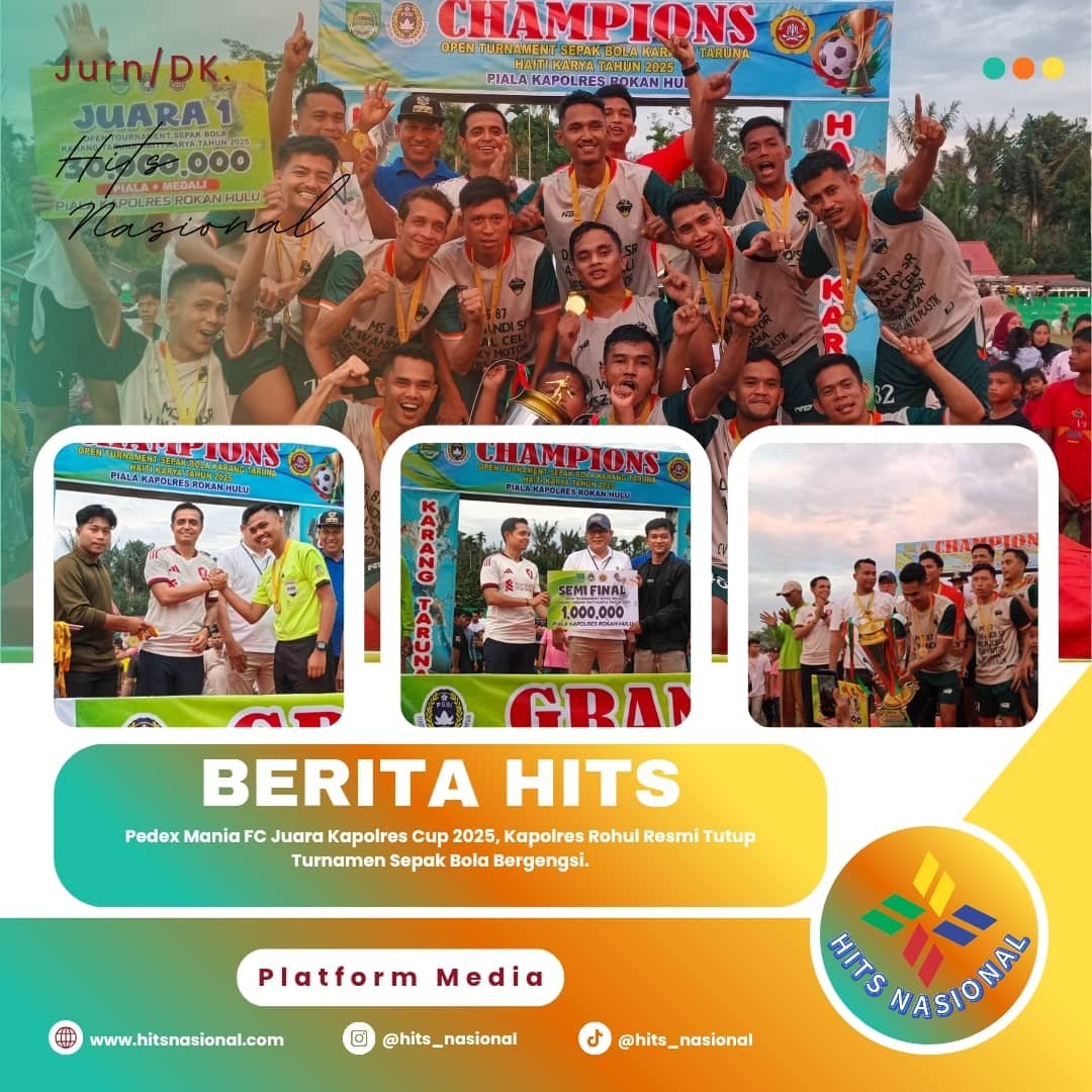 Pedex Mania FC Juara Kapolres Cup 2025, Kapolres Rohul Resmi Tutup Turnamen Sepak Bola Bergengsi