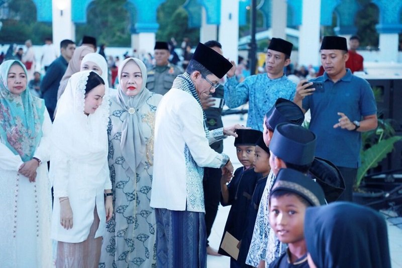 BATAM, hitsnasional.com – Ribuan warga memadati Masjid Agung Raja Hamidah, Batamcentre untuk mengikuti buka puasa bersama yang digelar Pemerintah Kota Batam, Sabtu (28/2/2026). Dalam acara itu, Wali Kota Batam, Amsakar Achmad, bersama Wakil Wali Kota Batam, Li Claudia Chandra, menyerahkan santunan untuk 1.200 anak yatim.