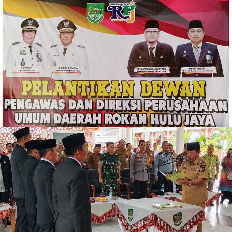 Adapun dewan pengawas yang di lantik yakni Abdul Halim mantan anggota DPRD Rokan Hulu dan anggota dewan pengawas Drs. yusmar M.si kemudian direksi perumda Rokan Hulu Jaya dua orang yakni Imran Tambusai selaku Direktur Utama dan Husni Budiman selaku direktur keuangan.
