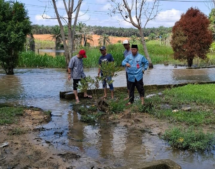 Saat melaksanakan peninjauan, Asisten II Fakhrizal menyampaikan bahwa akan dilaksanakan pembuatan parit selebar 1 meter untuk mengalirkan air agar tidak tergenang ke jalan.