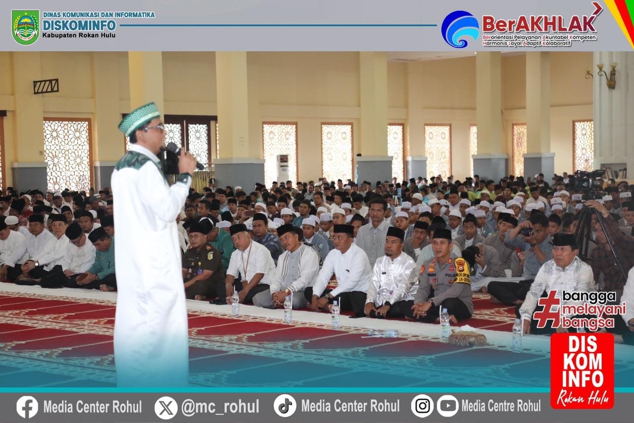 Mantan Dandim Inhil itu menambahkan sudah saatnya menunjukan jati diri dan kekuatan yang membedakan dengan kabupaten lainnya, Bupati juga menyampaikan dengan kedatangan Ustad Muhammad Subki Al-Bughury dapat memberikan ketenangan, kesejukan dan ilmu dalam rangka meningkatkan ketaqwaan kepada Allah SWT dan memberikan kesadaran kepada semua pihak untuk ikhlas dan bersatu dalam membangun Rohul.