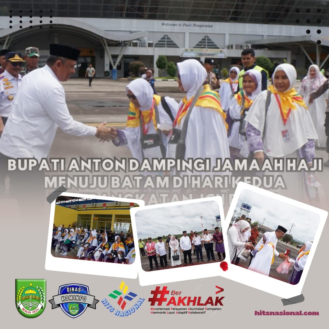 ROKAN HULU, hitsnasional.com – Bupati Rokan Hulu, Anton ST, MM bersama Ketua TP PKK Rokan Hulu, dr. Yeni Dwi Putri, mendampingi keberangkatan 58 Jamaah Calon Haji (JCH) kloter kedua menuju Batam, Jumat (9/5/2025). Penerbangan berlangsung sekitar pukul 12.30 WIB dari Bandara Tuanku Tambusai, Pasir Pengaraian.