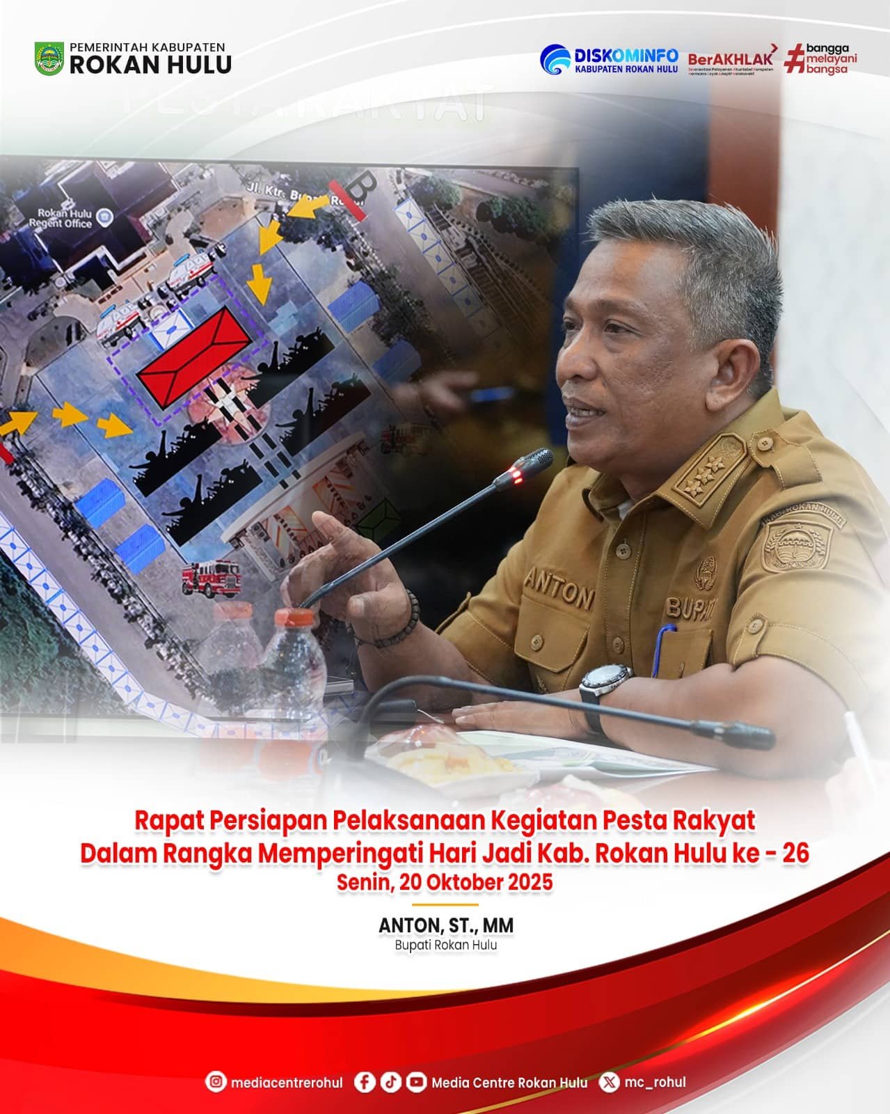 Rokan Hulu, hitsnasional.com – Menjelang pelaksanaan malam puncak pesta rakyat dalam rangka Hari Jadi Kabupaten Rokan Hulu (Rohul) ke-26 tahun yang berlangsung pada tanggal 25 nanti, Bupati Rohul Anton, ST, MM memimpin rapat finalisasi persiapan di Ruang rapat Rumah Dinas Bupati, Senin (20/10/2025).