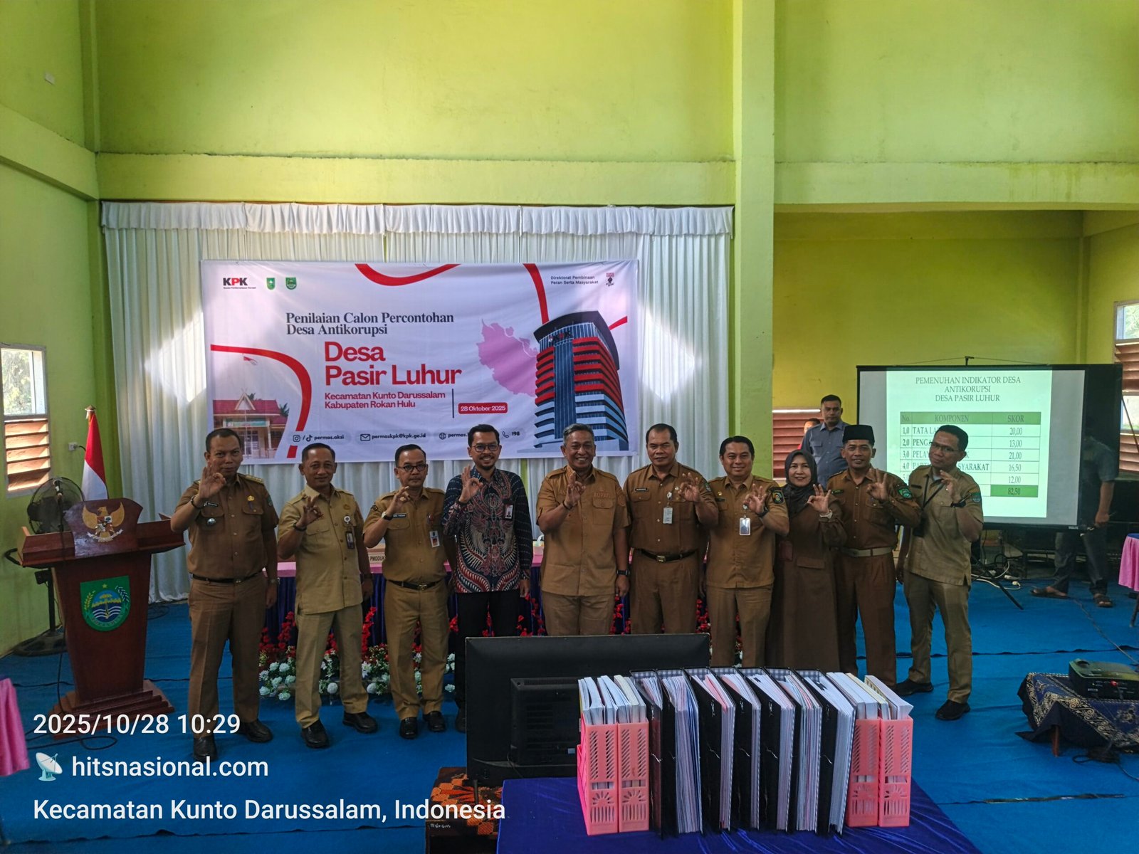 Rokan Hulu, hitsnasional.com — Komisi Pemberantasan Korupsi (KPK) Republik Indonesia resmi menetapkan Desa Pasir Luhur, Kabupaten Rokan Hulu, Provinsi Riau, sebagai Percontohan Desa Antikorupsi Tahun 2025. Predikat membanggakan ini bukan diraih secara instan. Proses penilaian telah berlangsung sejak Juli 2025, dimulai dari tahap melengkapi dokumen perencanaan, penyelenggaraan, pengawasan, hingga pertanggungjawaban realisasi dana desa tahun anggaran 2023 dan 2024.