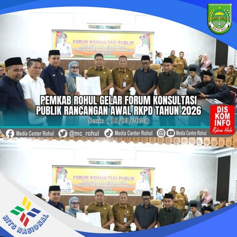 ROKAN HULU, hitsnasional.com – Pemerintah Kabupaten Rokan Hulu menggelar Forum Konsultasi Publik Rancangan Awal Rencana Kerja Pemerintah Daerah (RKPD) Kabupaten Rokan Hulu Tahun 2026 di Aula Bappeda Rohul, Senin (10/03/2025).
