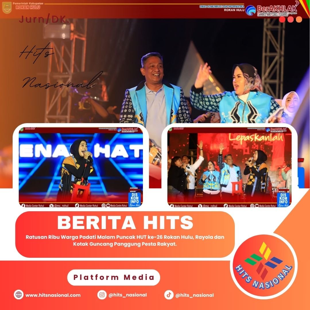 Rokan Hulu, hitsnasional.com – Malam puncak perayaan Hari Ulang Tahun (HUT) Kabupaten Rokan Hulu (Rohul) ke-26 berlangsung megah dan penuh semarak. Ratusan ribu masyarakat tumpah ruah di Lapangan Kantor Bupati, menikmati hiburan dari artis Minang kenamaan Rayola serta penampilan memukau dari grup band nasional Kotak yang mengguncang panggung pesta rakyat, Sabtu malam (25/10/2025).