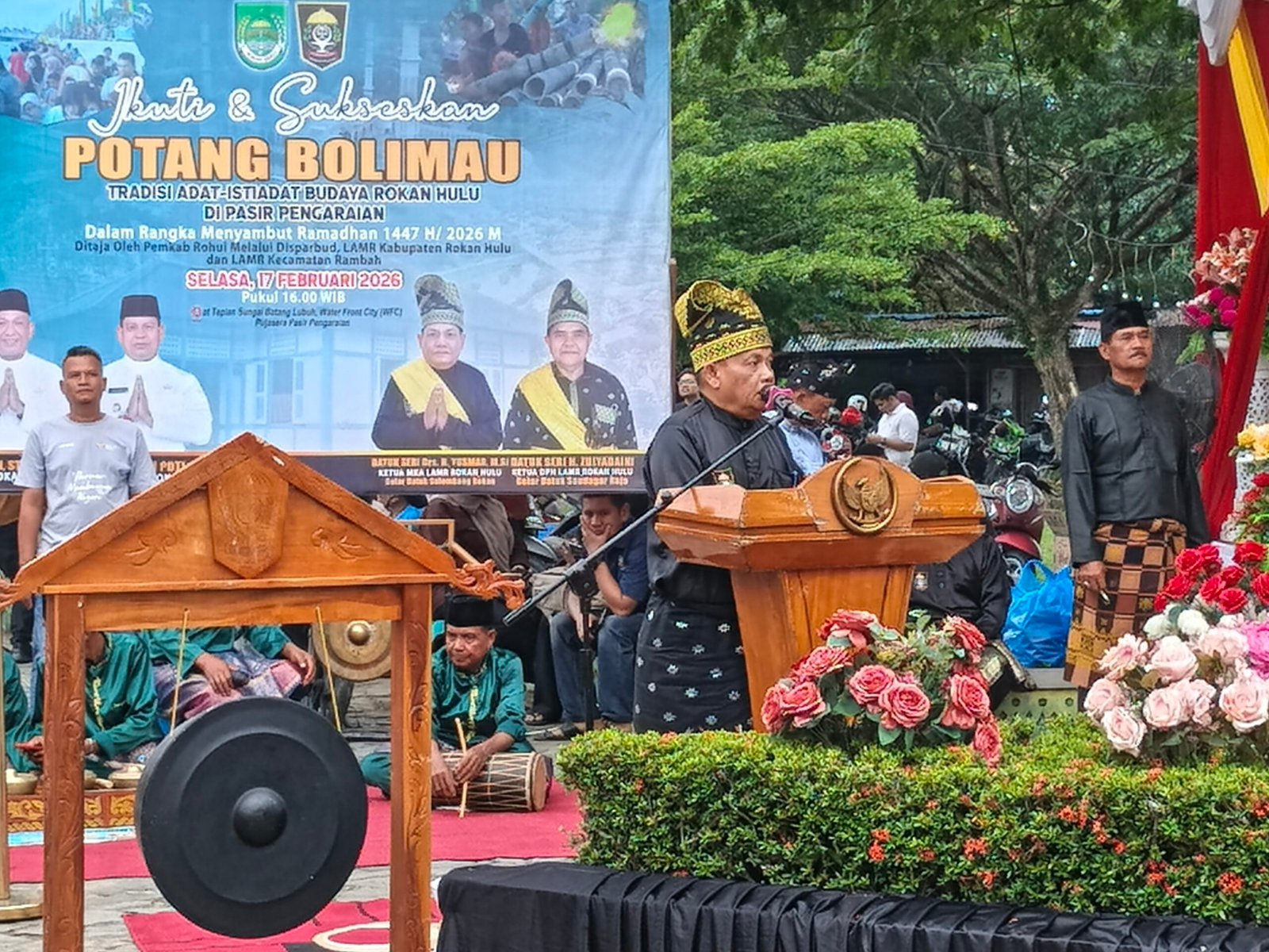 Rokan Hulu, hitsnasional.com – Pemerintah Kabupaten Rokan Hulu (Rohul) bersama Lembaga Adat Melayu (LAMR) Rohul melaksanakan tradisi adat Potang Bolimau dalam rangka menyambut datangnya bulan suci Ramadhan 1447 Hijriah. Tradisi yang sarat nilai religius dan budaya ini berlangsung khidmat dan meriah, Pujasera Batang Lubuh Pasir Pengaraian, Selasa (17/02/2026).