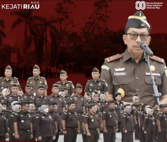 PEKANBARU, hitsnasional.com – Pengamalan nilai-nilai Tri Krama Adhyaksa dalam pelaksanaan tugas menjadi poin utama yang ditekankan oleh Kepala Kejaksaan Tinggi (Kajati) Riau, Akmal Abbas, SH., MH., saat memimpin Apel Kerja di halaman Kantor Kejati Riau, Senin (4/8/2025).