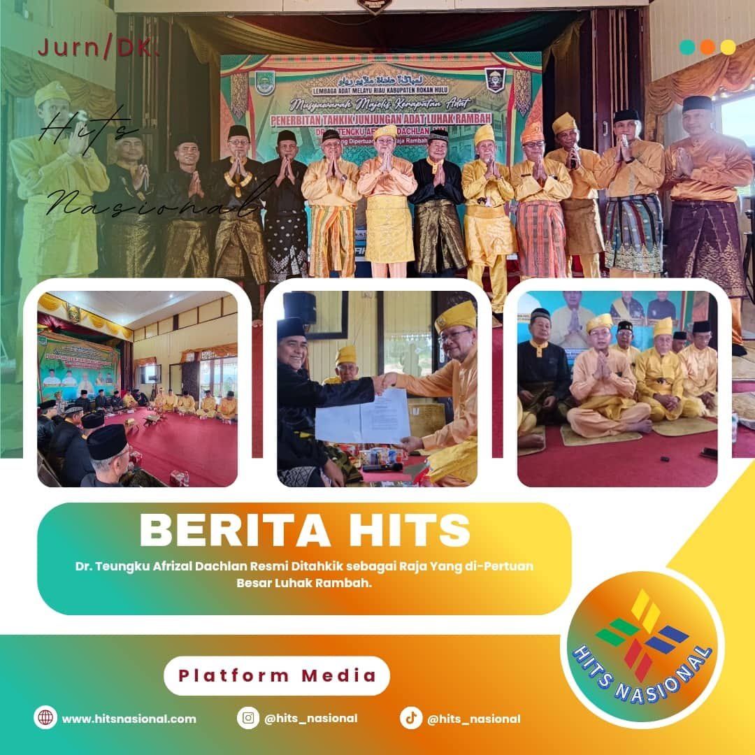 Rokan Hulu | hitsnasional.com – Gedung LAMR Rokan Hulu menjadi saksi momen bersejarah saat Dr. Tengku Afrizal Dachlan, MM., secara resmi ditahkik memimpin Luhak Rambah sebagai Raja Yang di-Pertuan Besar, dalam prosesi adat yang khidmat dan penuh makna, Sabtu siang (04/10/2025).