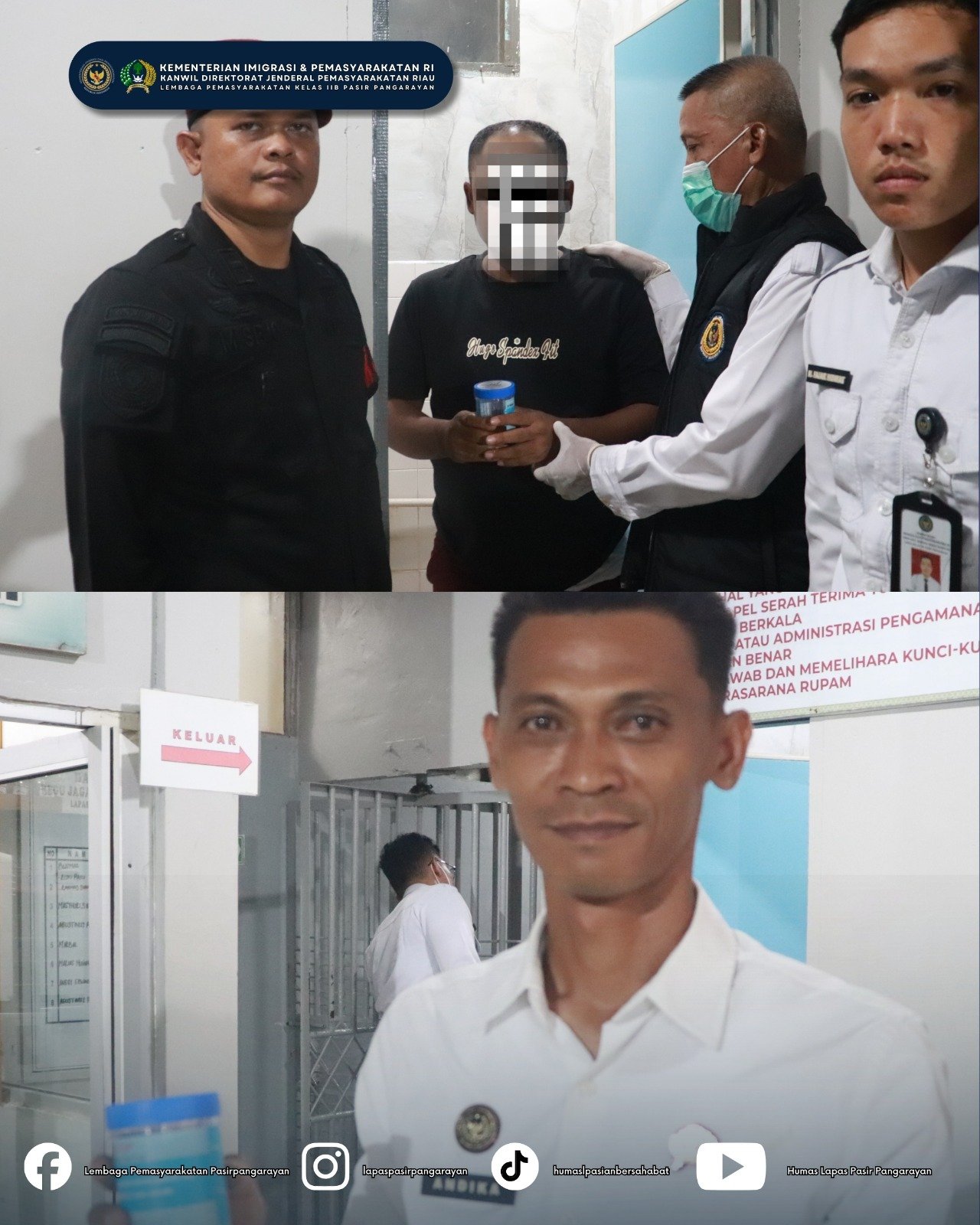 Kepala Kantor Wilayah Ditjenpas Riau, Maizar, bersama Kepala Lapas Kelas IIB Pasir Pangarayan, Efendi Parlindungan Purba, turut memantau jalannya kegiatan guna memastikan pelaksanaannya berjalan tertib dan sesuai ketentuan.