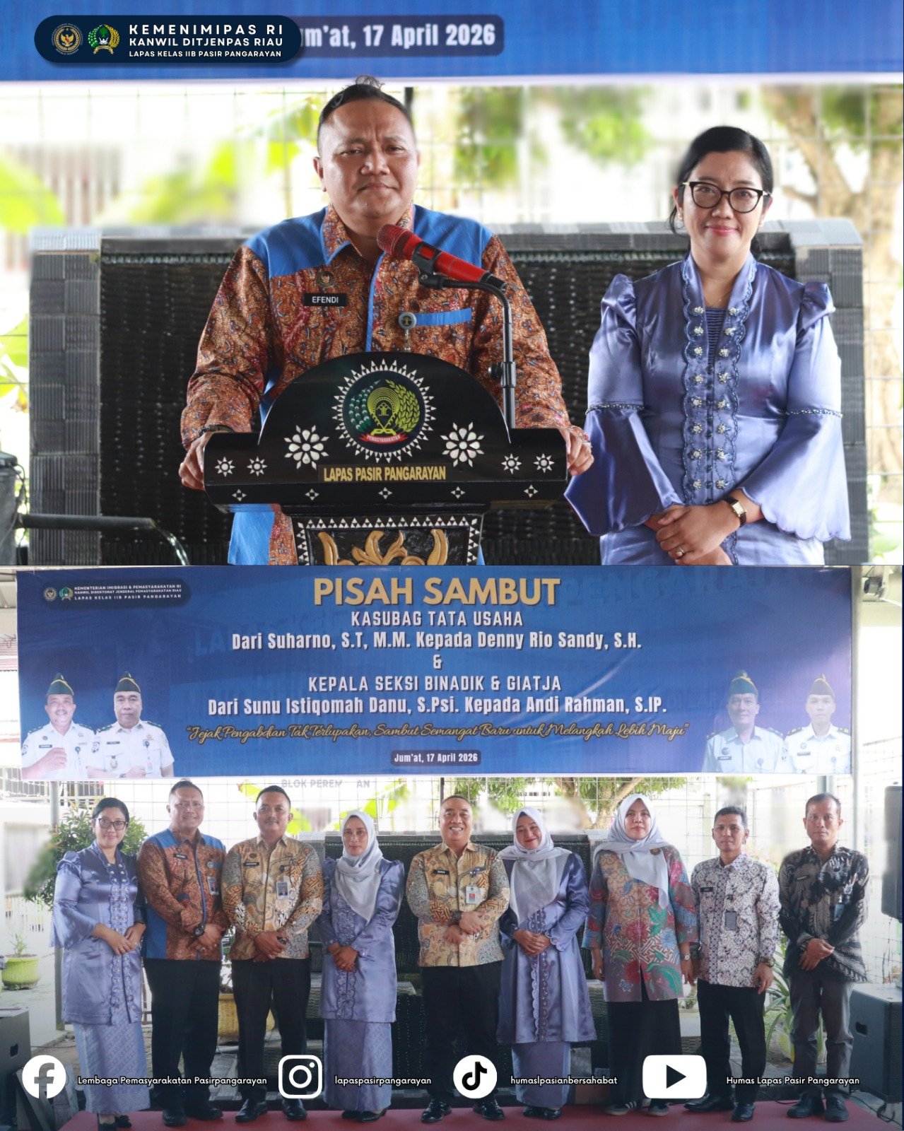 Kegiatan ini menjadi momentum untuk melepas pejabat lama sekaligus menyambut pejabat baru yang akan melanjutkan tugas dan tanggung jawab di lingkungan Lapas Pasir Pangarayan.