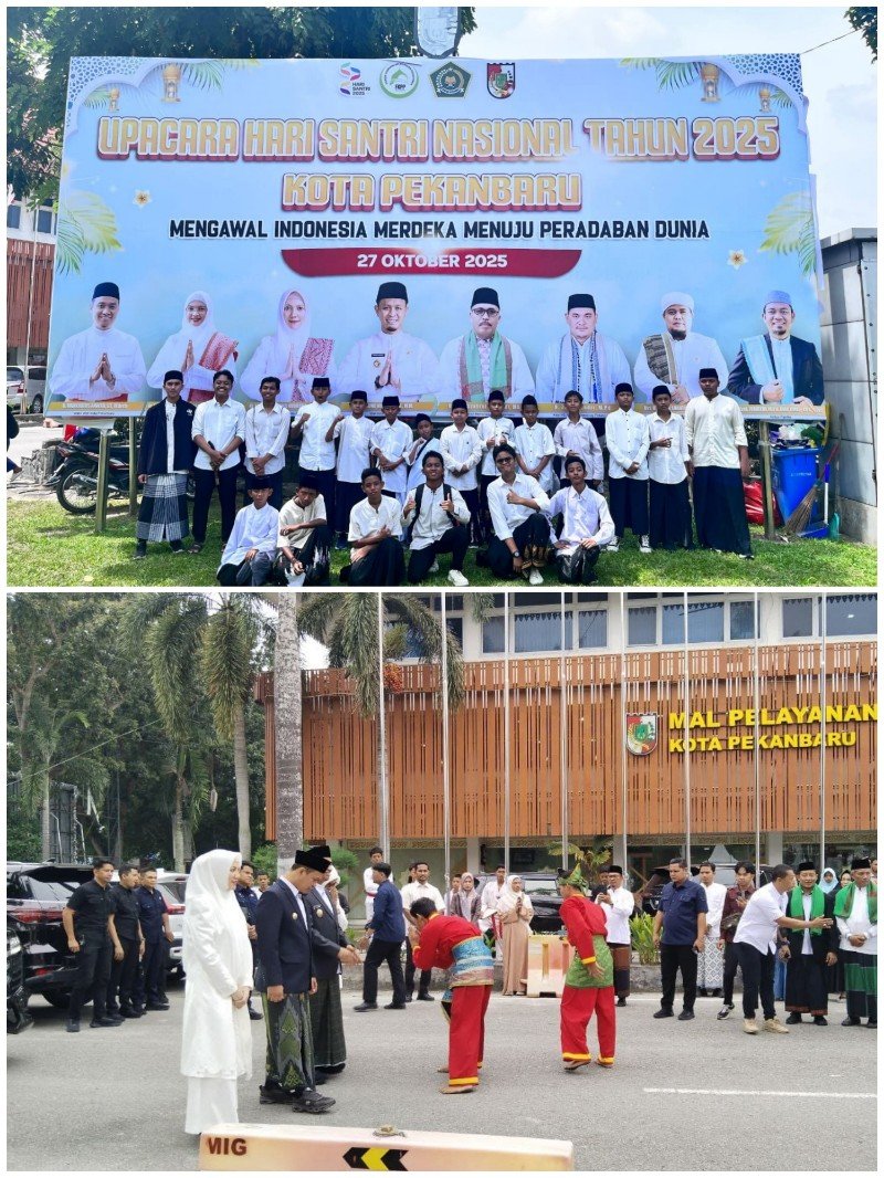 Wali Kota Pekanbaru, H. Agung Nugroho, bertindak sebagai pembina upacara. Dalam amanatnya, ia menekankan pentingnya peran santri dalam menjaga nilai-nilai keislaman dan kebangsaan di tengah arus modernisasi.