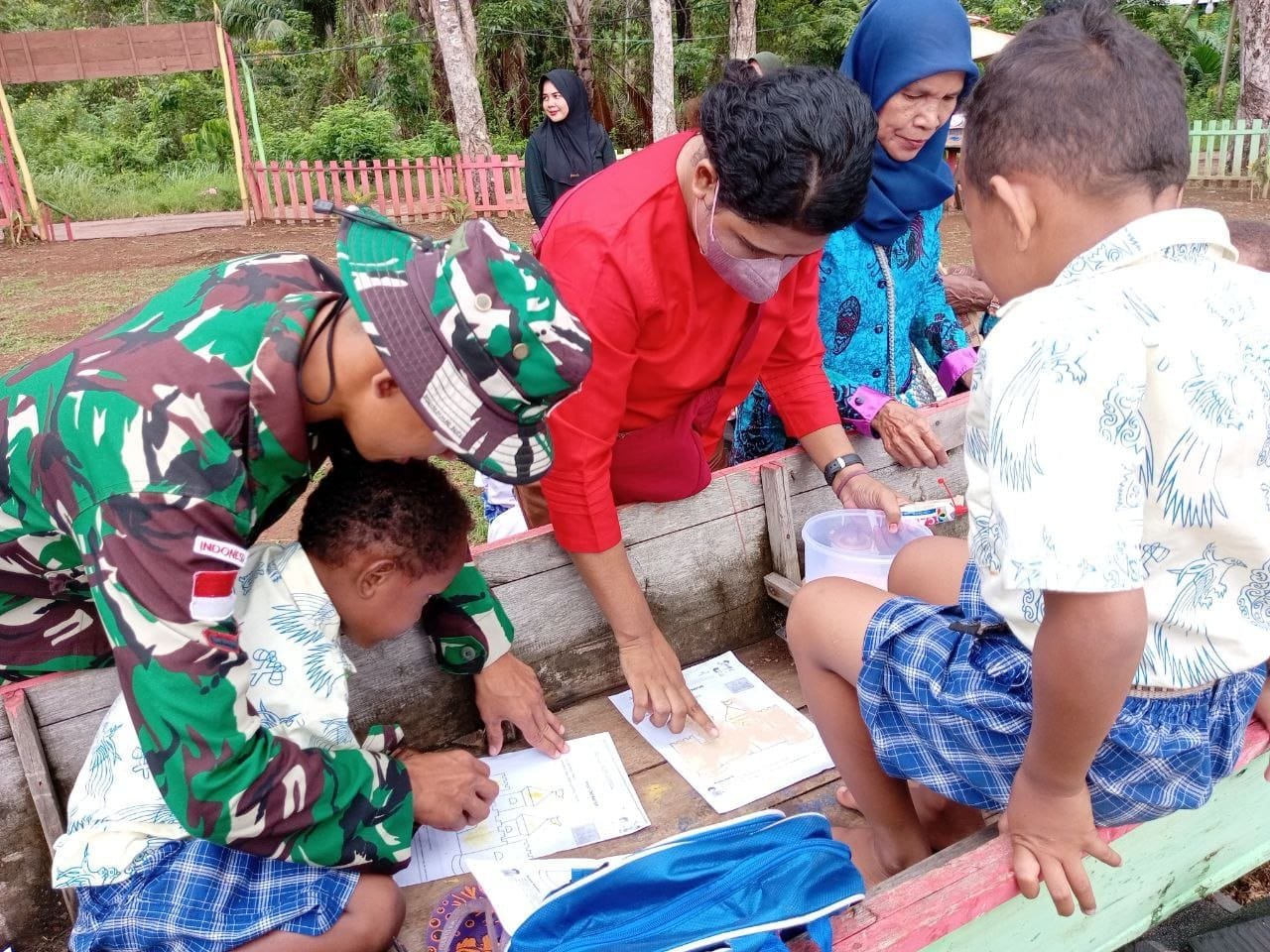 “Mereka ingin mencari suasana yang baru untuk tempat belajar selain di ruangan TK. Dengan senang hati personel satgas menerima dan mengajari dan membimbing mereka menggambar serta memberikan beberapa materi pengetahuan tentang wawasan kebangsaan guna untuk menumbuhkan rasa cinta tanah air kepada anak-anak sejak usia dini,” ucap Danpos.