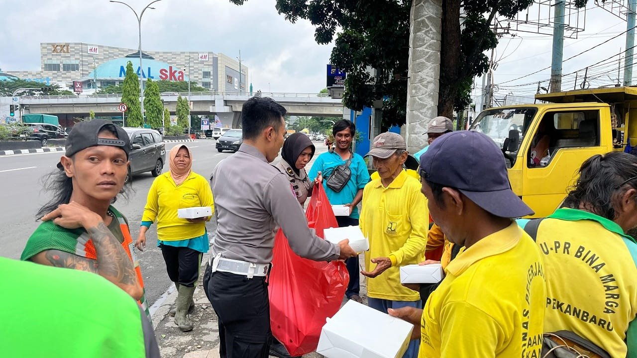 “Giat rutin bagi-bagi 200 nasi kotak kepada petugas kebersihan jalan, pengemis, gelandangan ,tukang parkir serta para sopir-sopir angkutan barang ini dalam program Jum’at berkah Ditlantas Polda Riau ” Kata Wadir Lantas AKBP Nurhadi, Sabtu (12/10/24).