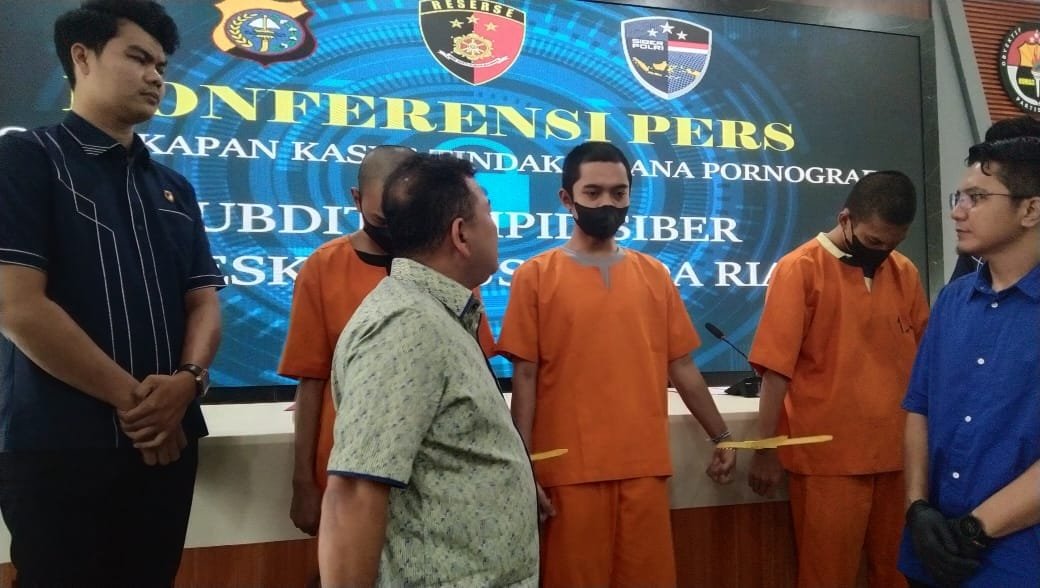 “Dalam kasus pornografi ini, Ditreskrimsus Polda Riau berhasil amankan 3 (Tiga) tersangka yakni, PF (23), DH (23) dan RH (19),” jelas Dirkrimsus Kombes Pol Nasriadi didampingi Kabid Humas Polda Riau Kombes Anom Karbianto.