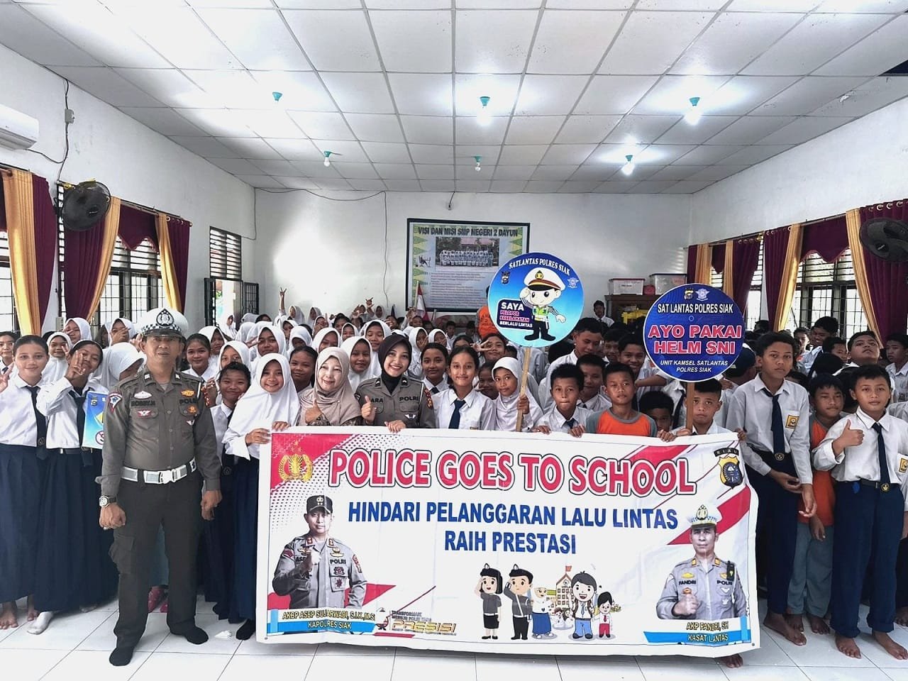 “Kegiatan Police Goes To School hari ini kita laksanakan bersama SMP Negeri 2 Dayun Kabupaten Siak,” kata Kasat.