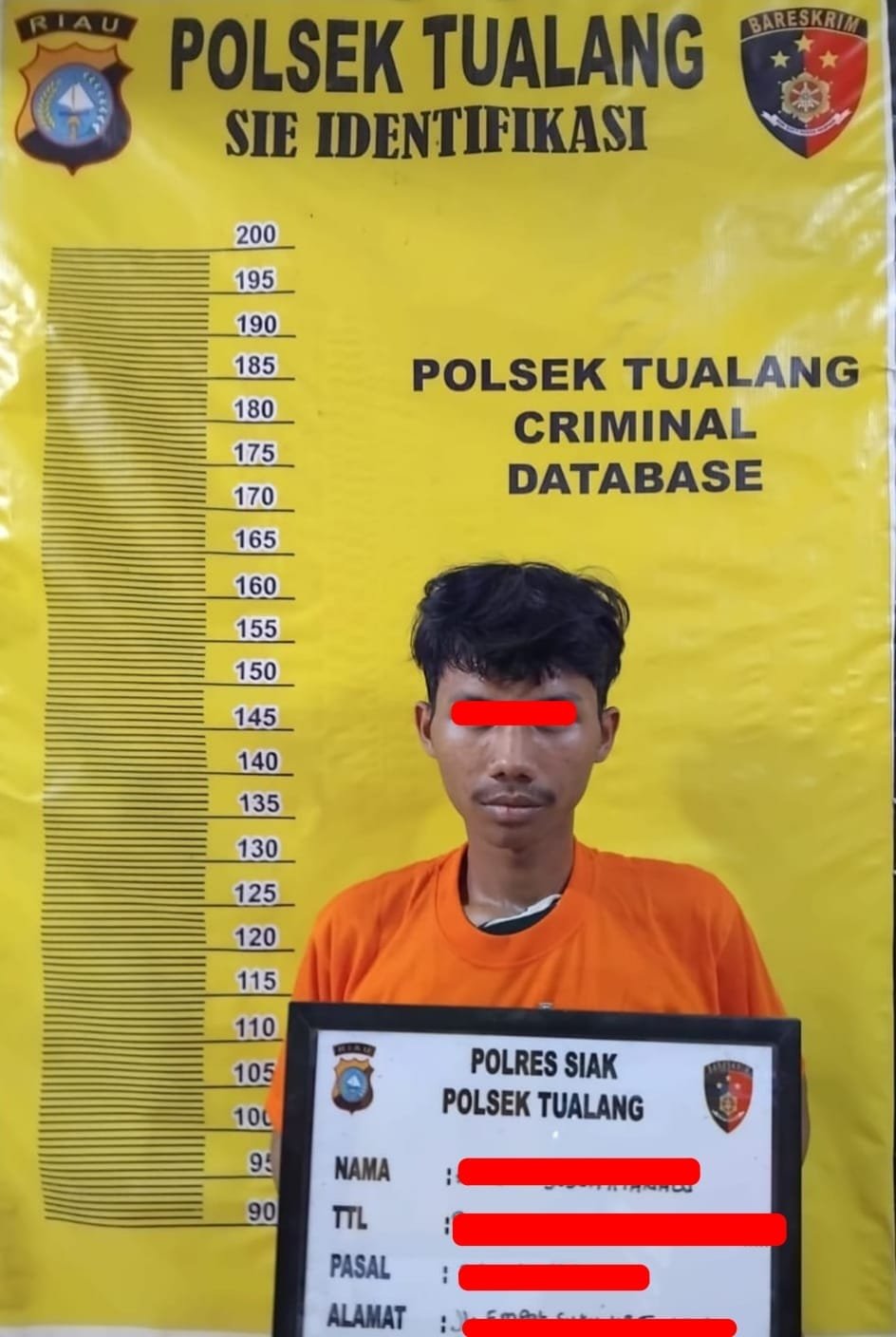 Dan pada hari Kamis 18 April 2024 sekira jam 11.30 Wib pelaku brhasil diamankan di rumahnya yang berada di Jl. Empat Suku RT.008 RW. 007 Kampung Tualang Kec. Tualang Kab. Siak yang mana pada saat dilakukan penangkapan di rumahnya pelaku tidak ada melakukan perlawanan. Pelaku mengakui atas perbuatan teraebut.