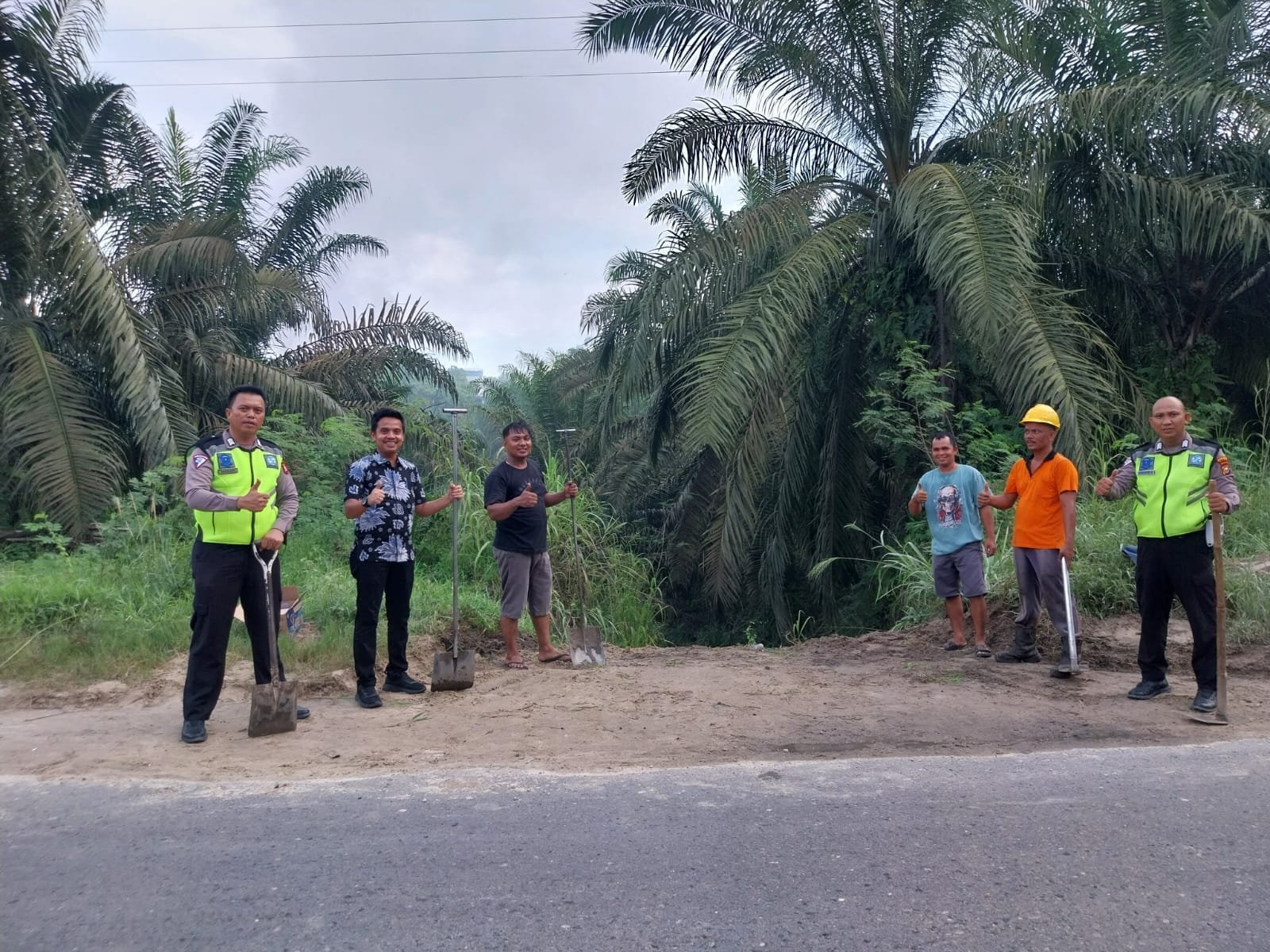 Anggota Lalu lintas Polsek Kandis bersama warga dengan menggunakan peralatan seadanya membersihkan genangan air yang selama ini cukup berpotensi mengakibatkan Laka lantas di ruas jalan lintas Sumatra ini.
