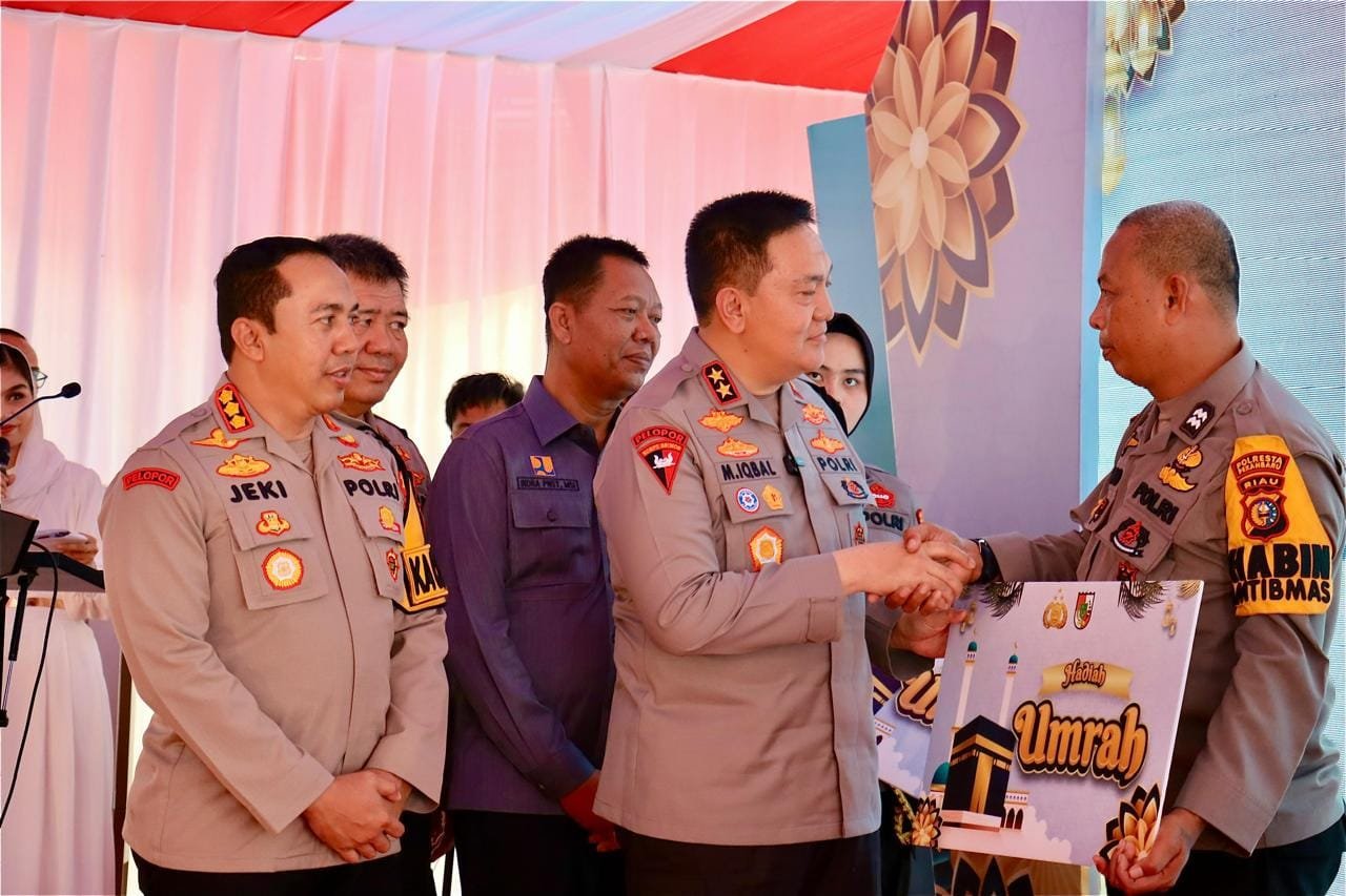 Pantauan, dalam kesempatan tersebut Kapolda Riau Irjen Pol Muhammad Iqbal memberikan tiket Umroh kepada 2 orang personel Polresta Pekanbaru yang berprestasi serta piagam penghargaan kepada beberapa orang wartawan.