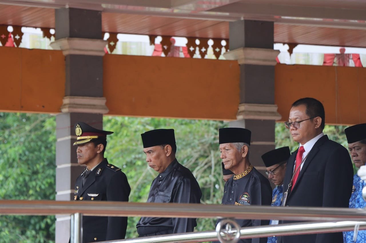 Upacara tersebut dipimpin oleh Penjabat Sekretaris Daerah Kabupaten Kuantan Singingi, dr. Fahdiansyah, S.Pog. Acara ini dihadiri oleh berbagai pejabat dan tokoh penting, di antaranya Kapolres Kuansing yang diwakili oleh Kabag SDM Polres Kuansing, Kompol Y. Emanuel Bambang Dewanto, SH., Kajari Kuansing yang diwakili oleh Kasubsi A pada Kejaksaan Negeri Kuantan Singingi, Hanung Danu Putranto, SH., Dandim 0302/Inhu – Kuansing yang diwakili oleh Danramil 02, Kapten Inf. J. Sihombing, Ketua Pengadilan Negeri Teluk Kuantan yang diwakili oleh Hakim Timothee Kencono Malye, SH, Ketua Pengadilan Agama Kuansing, Niva Resna, S.Ag, Sekretaris DPRD Kabupaten Kuansing, Drs. Napisman, Kalapas IIB Teluk Kuantan yang diwakili oleh Kasi Keamanan dan Ketertiban Lapas IIB Teluk Kuantan, Nepri Mustami, Ketua TP PKK Kabupaten Kuansing, Yulia Herma Suhardiman Amby, Para Asisten Pemda Kabupaten Kuansing, Para OPD Pemda Kabupaten Kuansing, Para Kaban dan Kadis Pemkab Kuansing, Para Pimpinan Bank dan Para Camat se-Kabupaten Kuansing.