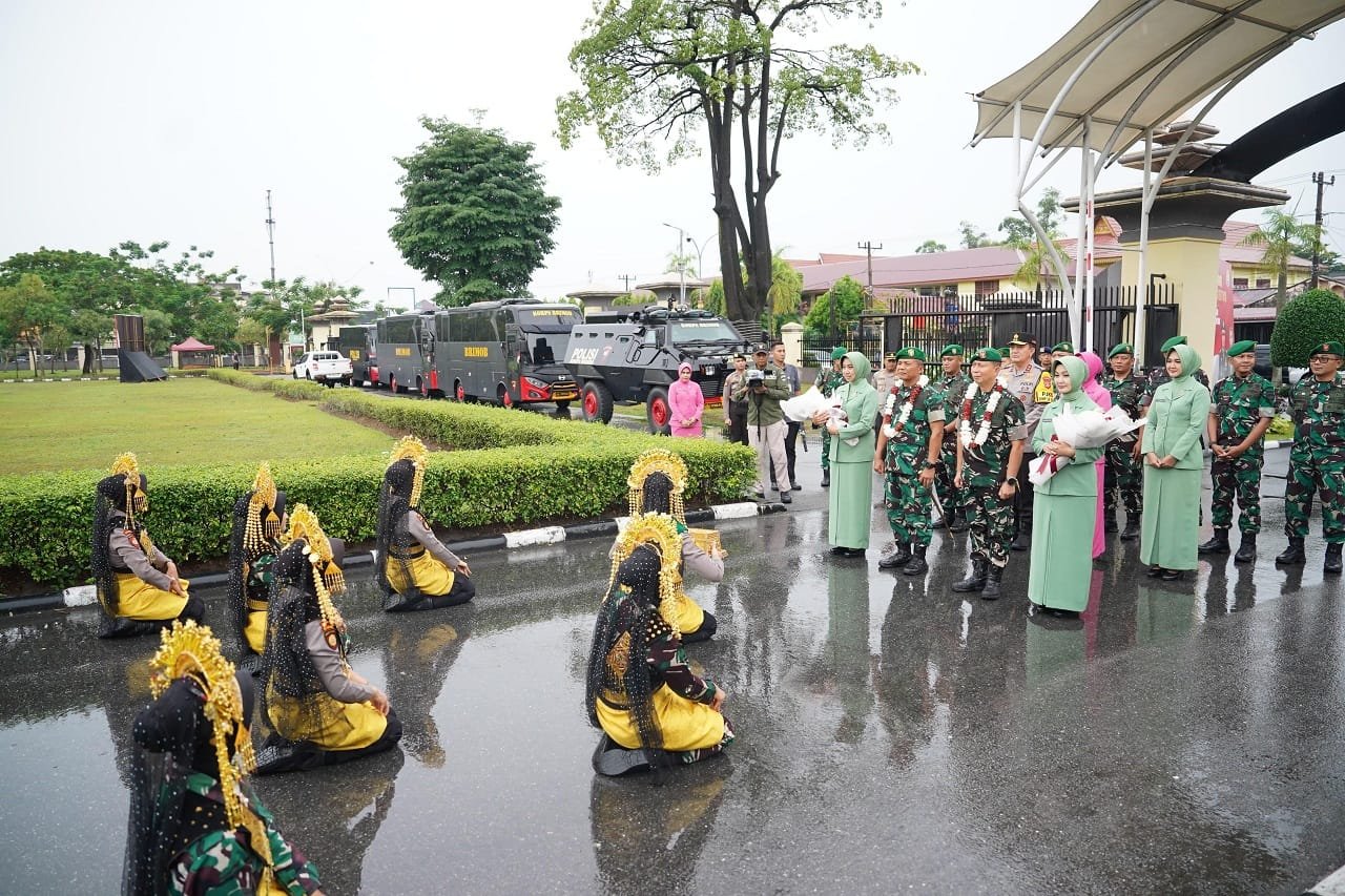 Penyambutan Danrem baru Brigjen TNI Sugiyono bersama istri dihadiri seluruh personel Polda Riau, Pejabat Utama (PJU) serta seluruh Kapolres Jajaran Polda Riau.