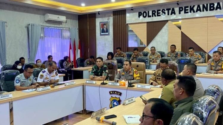 PEKANBARU, hitsnasional.com – Dalam rangka pengamanan hari raya dan pasca Hari Raya Idul Fitri 1445 H/2024 M, Kapolresta Pekanbaru Kombes Pol Jeki Rahmat Mustika, SIK pada Selasa 26 Maret 2024 memimpin rapat koordinasi lintas sektoral Operasi Ketupat Lancang Kuning 2024.