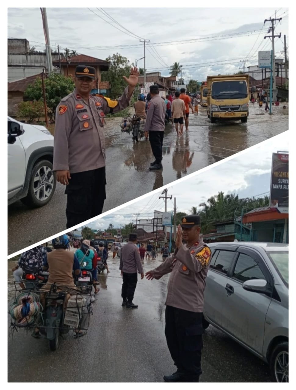 RAMBAH HILIR(ROHUL),hitsnasional.com – Curah hujan tinggi mengakibatkan genangan air yang berujung banjir di wilayah hukum Polsek Rambah Hilir, Kabupaten Rokan Hulu. Untuk mencegah hal-hal yang mengganggu Kamtibmas dan mengurai kemacetan lalu lintas, Kapolsek Rambah Hilir, Ipda Jonnes lakukan pengamanan dan pengaturan lalu lintas, (17/11/2024).