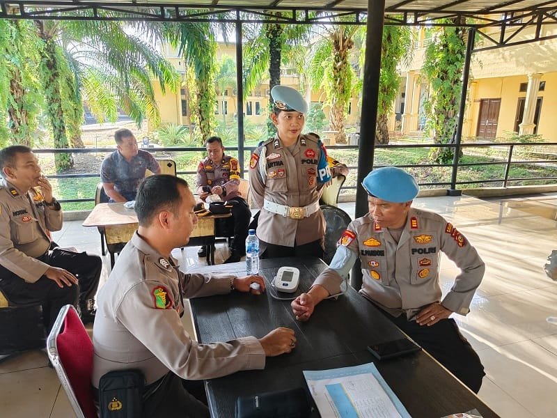 Terlihat beberapa personel mengikuti kegiatan pengecekan kesehatan seperti tensi darah dan vitamin/Bekkes di Kegiatan ini diadakan di Mako Polres Rohil, pada hari ini Jumat 12 April 2024 Pukul 08.15 WIB.